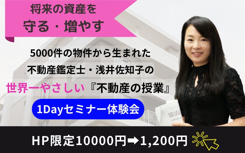 書籍『世界一やさしい不動産投資の教科書1年生』(4万部)著者女性不動産鑑定士 浅井佐知子が、今回オンラインセミナーでお伝えします。