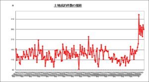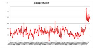 2022年3月発表、東京都の土地成約件数は116件で、前月比+16%、前年同月比では-24.2でした。前月比でプラス、前年同月比は20%以上のマイナスになりました。