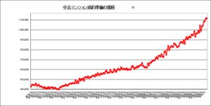 成約㎡単価は、1,005,500円で、前月比は-0.8%、前年同月比は+9.3%でした。
