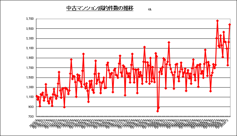 2026年3月発表、2月の東京都の中古マンション成約件数は2,583件で、前月比